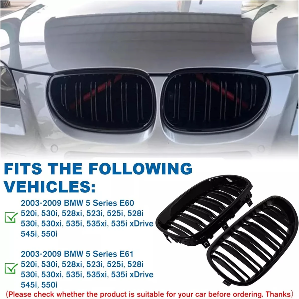 Double Line Front Bumper Kidney Grille For BMW E60 E61 M5 5 Series 520i 545i 550i 535i 2003-2010 Car Sport Racing Grill
